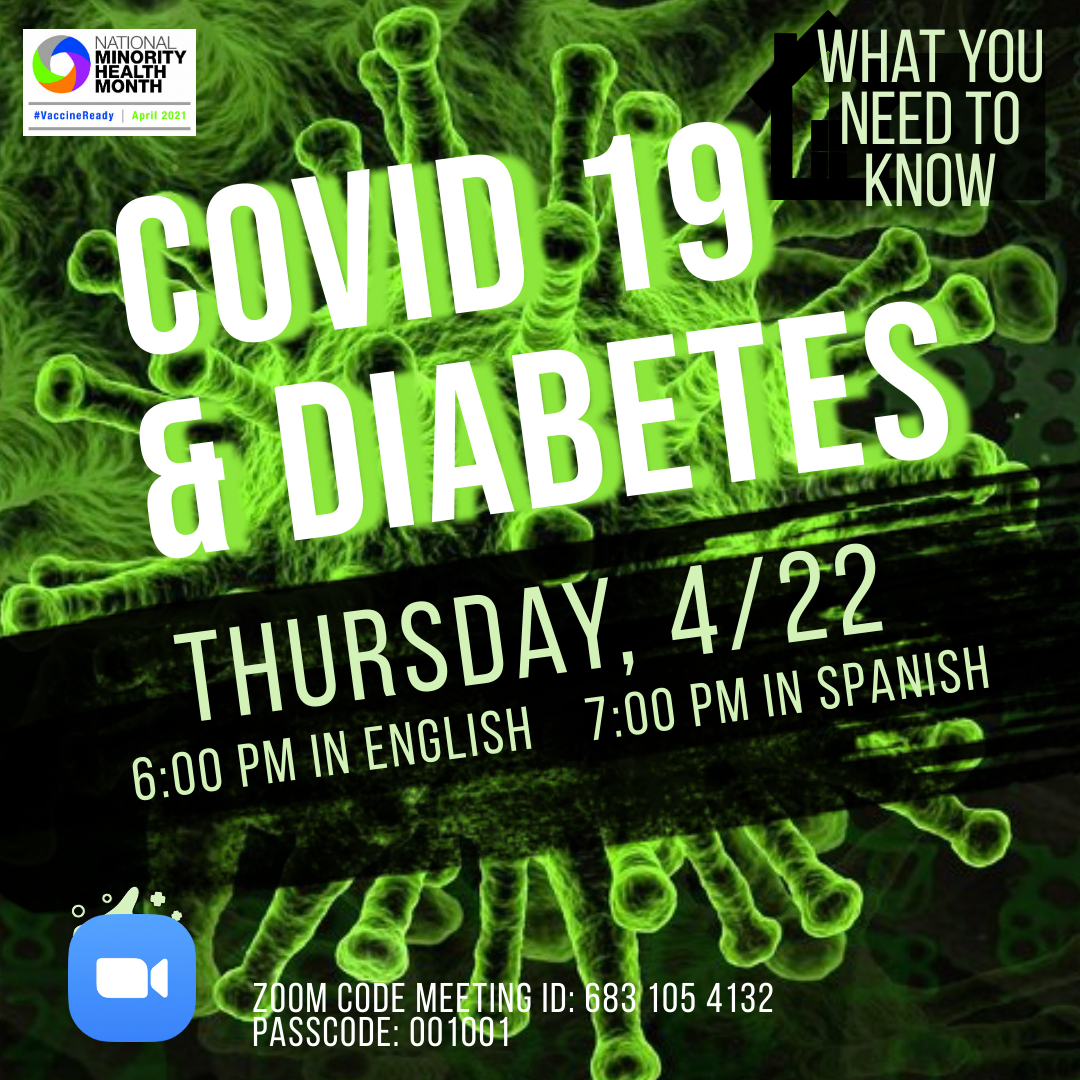 This week a series of events will be held remotely for National Minority Health Month. Please take a look at the flyers below for information about the sessions.